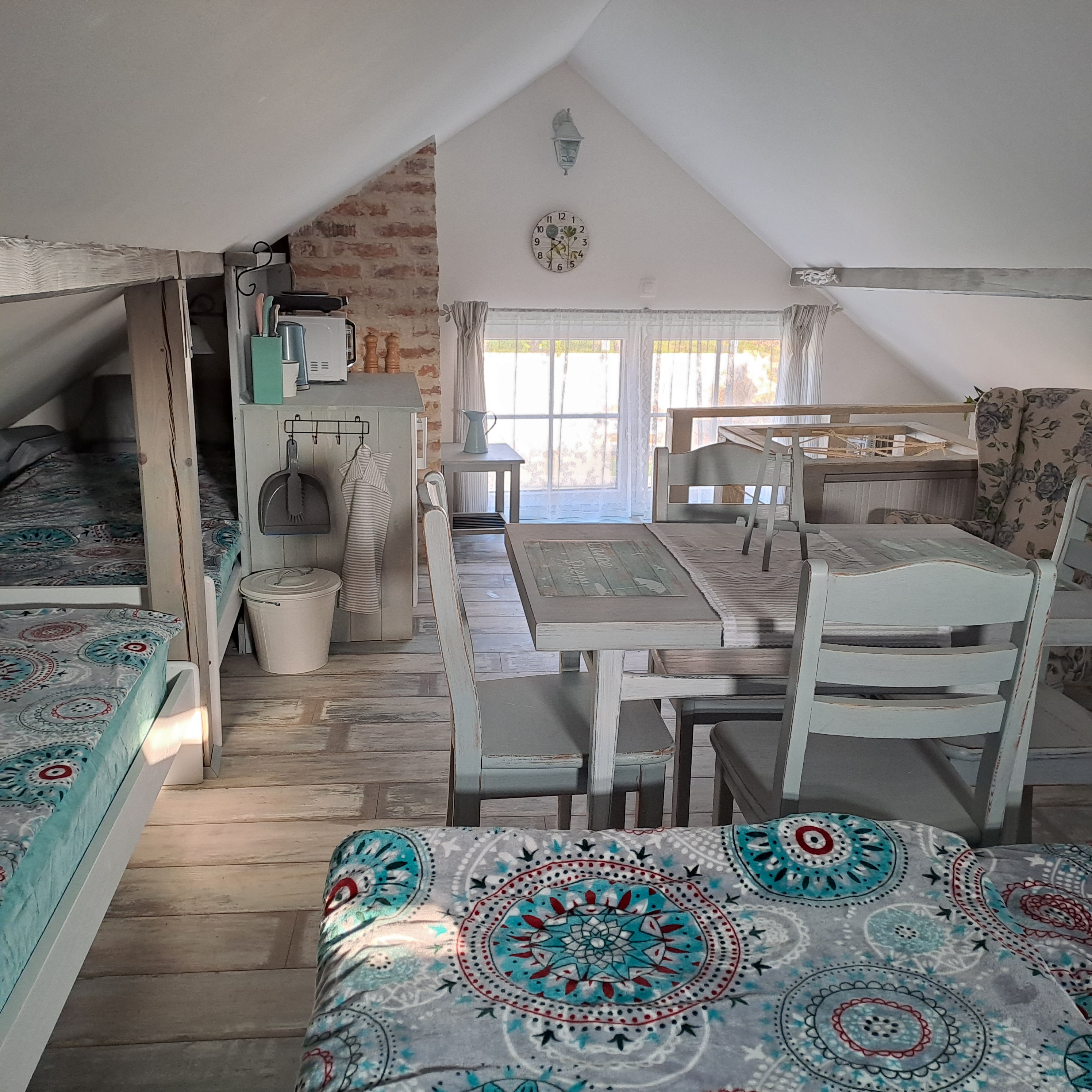 Apartmán se nachází v podkroví domu. Příchod k němu je ze zatáčky nad domem, kde je možné i zaparkovat auto a zadním vchodem přes venkovní terasu. Druhá možnost je hlavním vchodem z přední strany domu a přes společenskou místnost po schodech do podkroví.