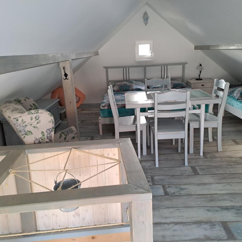 2x WC a koupelna se sprchovým koutem se nachází v samostatné přístavbě cca 10m od apartmánu a jsou přístupné i případně pro další hosty apartmánů, kteří však mají další wc i koupelnu k dispozici přímo v domě.